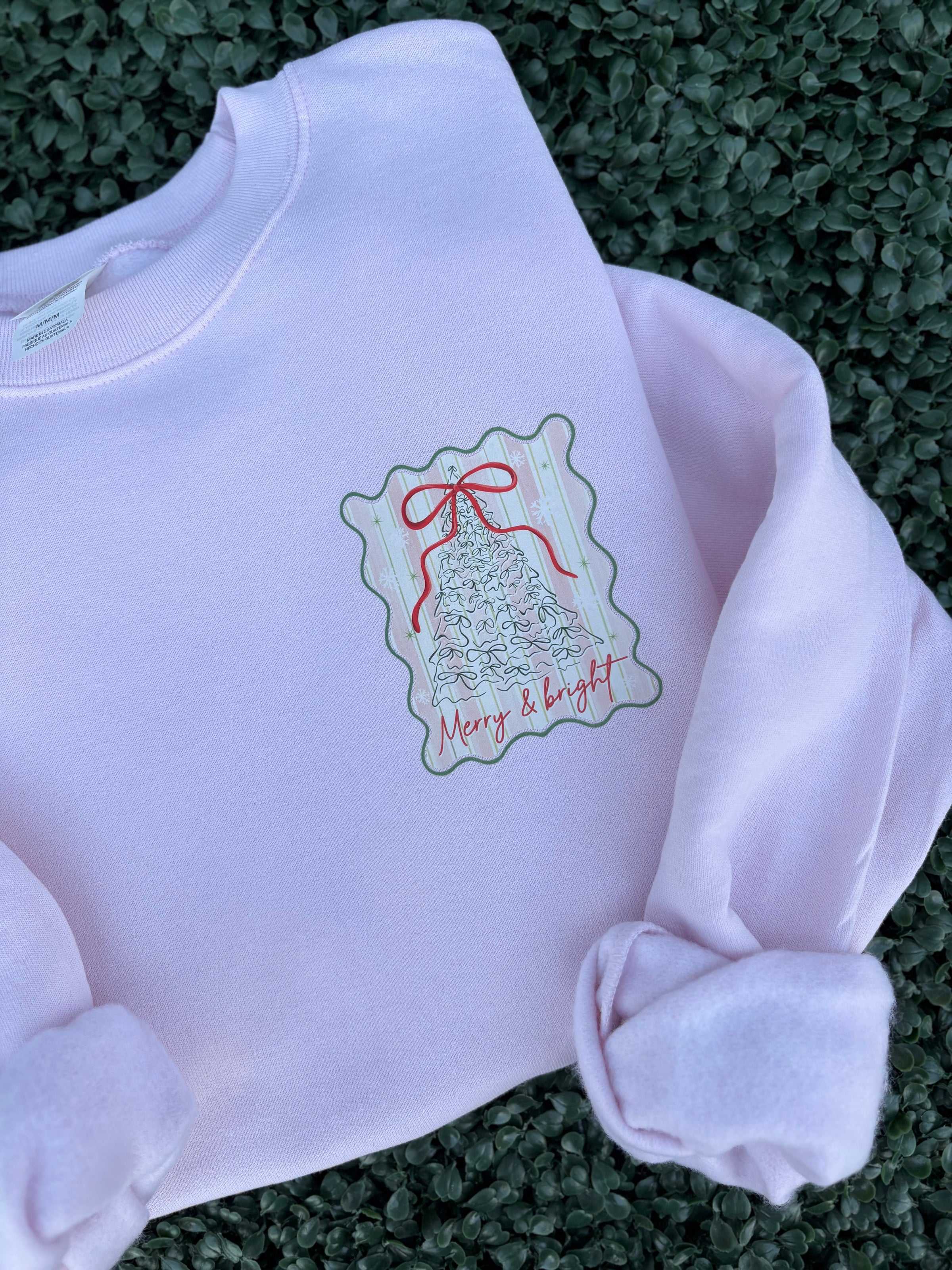 Coquette Stripe Christmas Bow Tree Front And Back Pink Sweatshirt